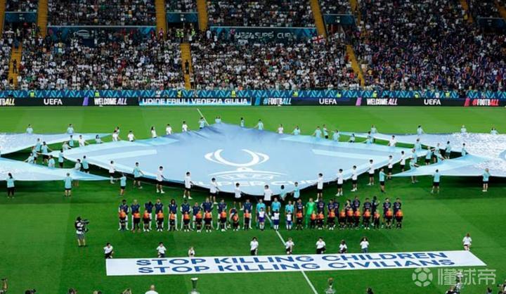 最近一场欧洲超级杯赛前,一面悬挂着“停止杀害儿童,停止杀害平民”字样的横幅引发了争议,欧足联被认为利用体育赛事传递政治信息。横幅上展示了来自阿富汗、伊拉克、尼日利亚、巴勒斯坦和乌克兰等地区的9名难民儿童。